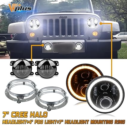 7 Led Halo Headlights Drl W Fog Turn Fender Lights Combo Fit Jeep