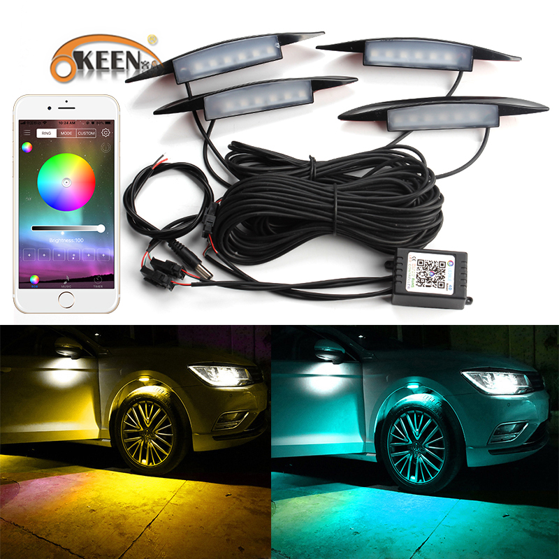 4pcs Car Fender Wheel Eyebrow Protector Led Lights Lamp Kit Rgb