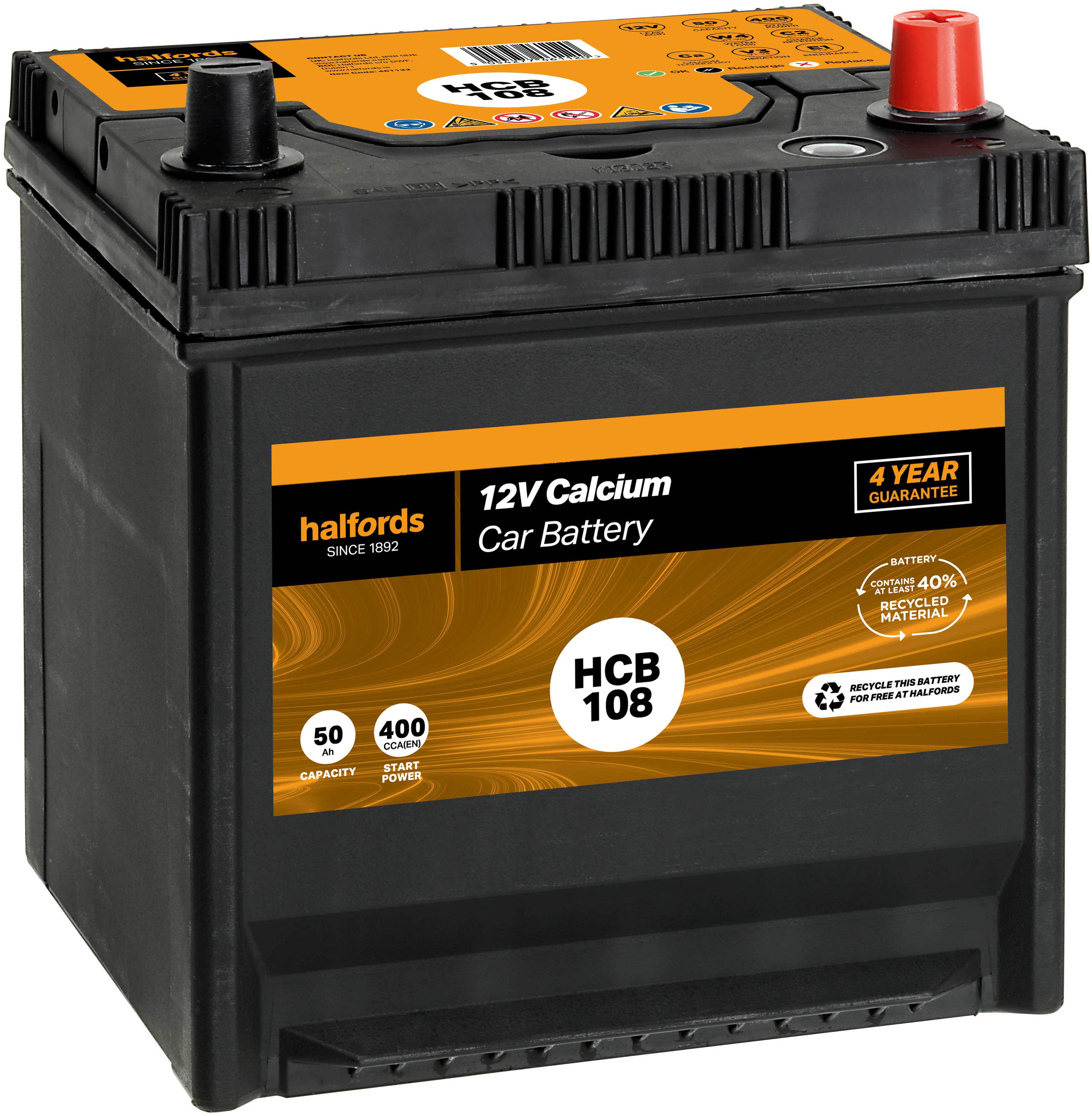 Halfords Hb108 Lead Acid 12v Car Battery 3 Year Guarantee