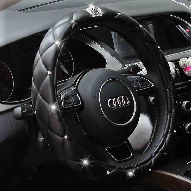 Rhinestones Crystal Car Steering Wheel Cover Pu Leather Steering