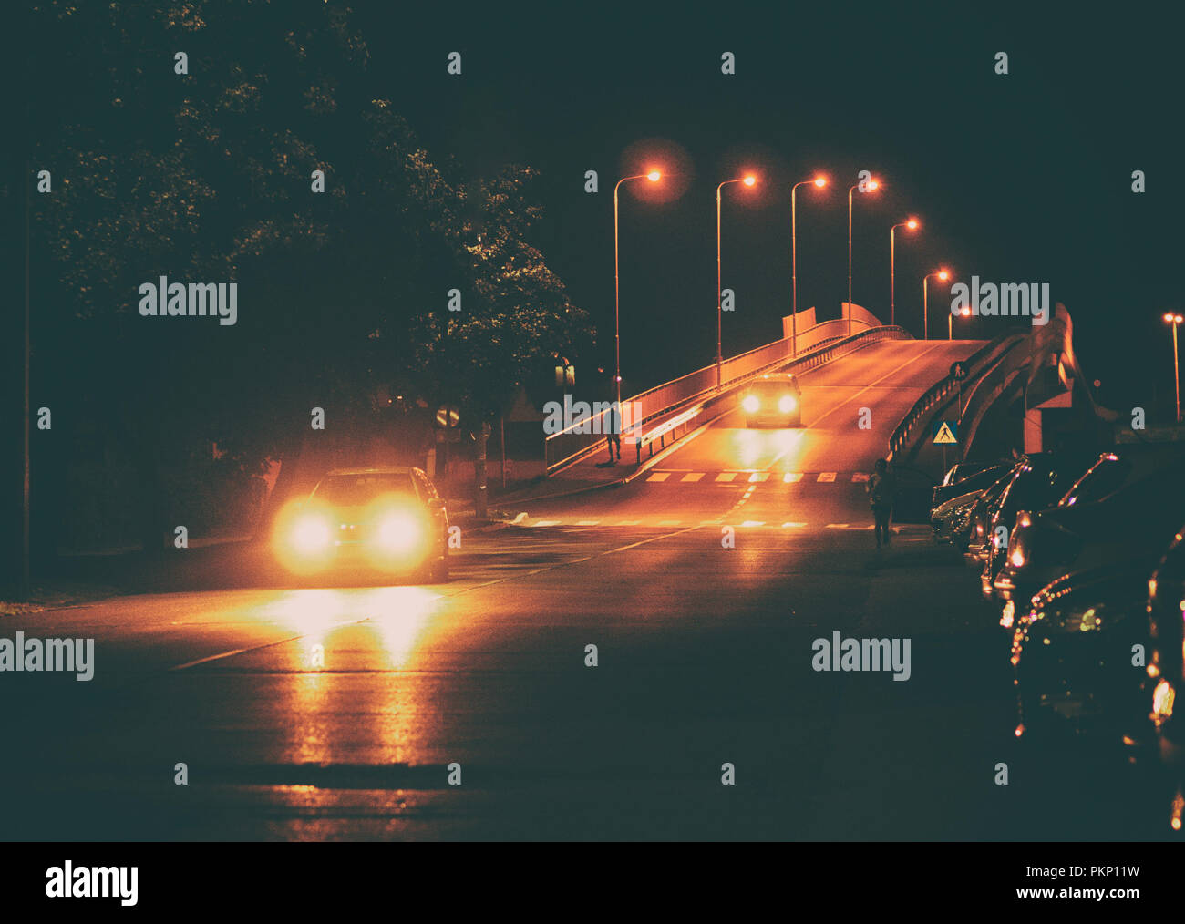 Two Cars Driving At Night Stock Photo 218686661 Alamy